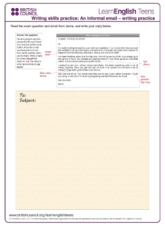 Writing skills practice: An informal email – writing practice Read the exam question and email from Jamie, and write your reply below.