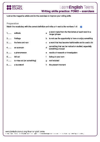 Writing skills practice: FOMO – exercises
