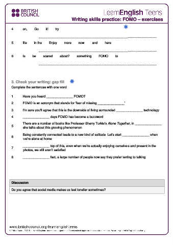 Writing skills practice: FOMO – exercises