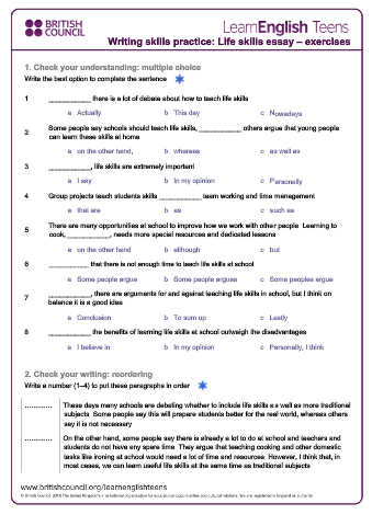Writing skills practice: Life skills essay – exercises