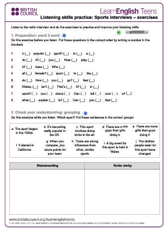 Listening skills practice: Sports interviews – exercises