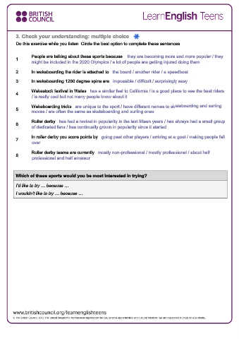 Do this exercise while you listen. Circle the best option to complete these sentences.