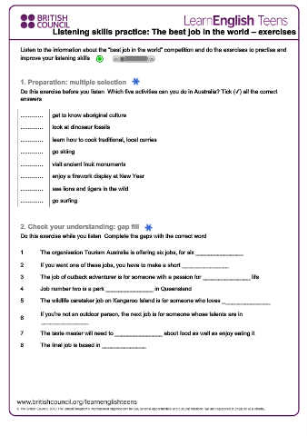 Listen to the information about the “best job in the world” competition and do the exercises to practise and