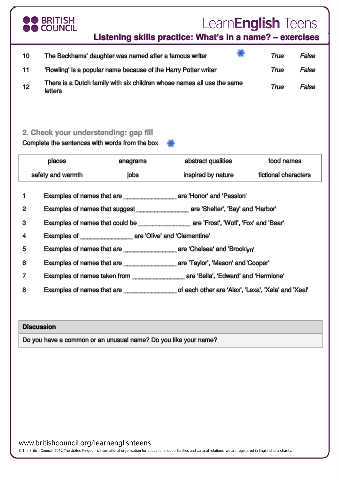 11. 'Rowling' is a popular name because of the Harry Potter writer. True False