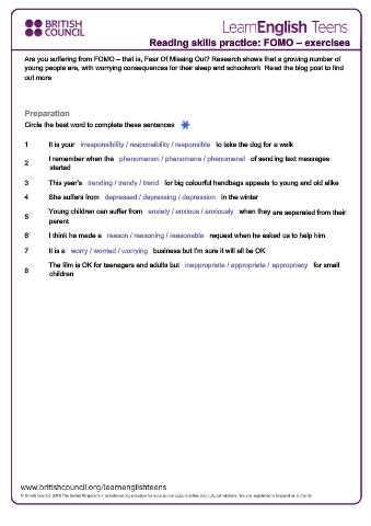7. It is a worry / worried / worrying business but I’m sure it will all be OK.