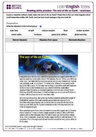 Reading skills practice: The end of life on Earth – exercises