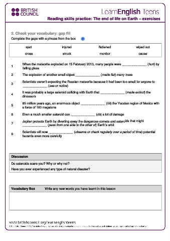 Reading skills practice: The end of life on Earth – exercises