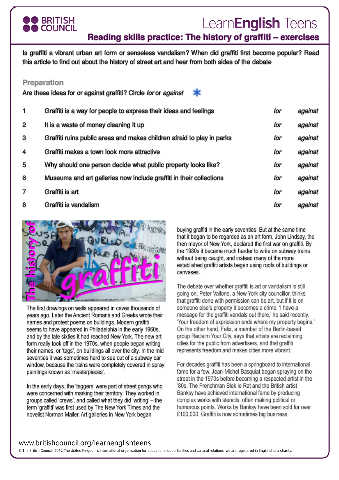 Reading skills practice: The history of graffiti – exercises