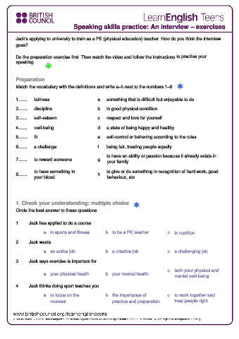 Jack's applying to university to train as a PE (physical education) teacher. How do you think the interview