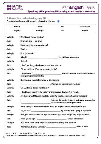 Jack:           4 ____________________________ I can get the grades I need in maths and science, I’m