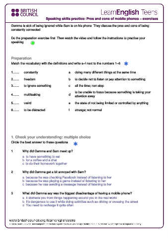 Speaking skills practice: Pros and cons of mobile phones – exercises
