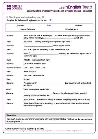 Speaking skills practice: Pros and cons of mobile phones – exercises