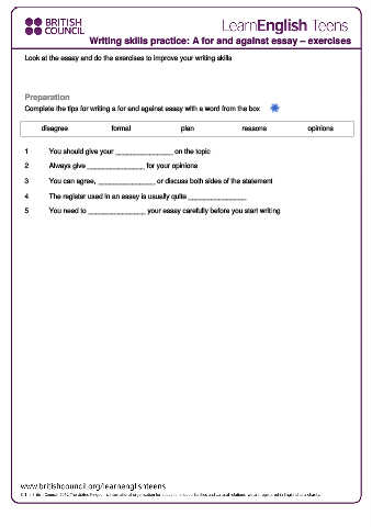 Writing skills practice: A for and against essay – exercises