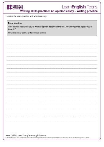 Your teacher has asked you to write an opinion essay with the title ‘Are video games a good way to