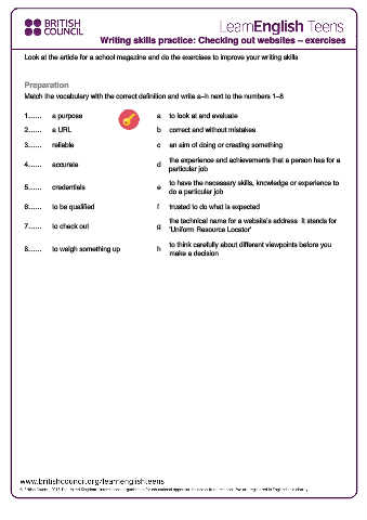 Match the vocabulary with the correct definition and write a–h next to the numbers 1–8.