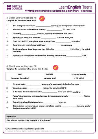1. Computer sales _______________ (went up at a steady rate) during the five years.