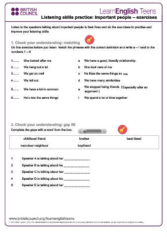 Listen to the speakers talking about important people in their lives and do the exercises to practise and