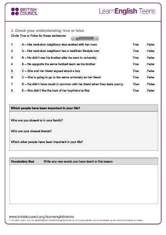 Vocabulary Box Write any new words you have learnt in this lesson.
