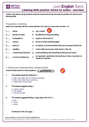 Listen to the teacher giving students advice for exams and do the exercises to practise and improve your
