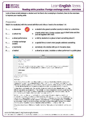 Look at these emails between a student and his friend who is studying in Scotland, then do the exercises