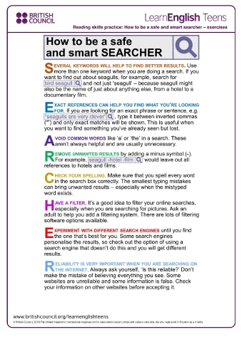 Reading skills practice: How to be a safe and smart searcher – exercises