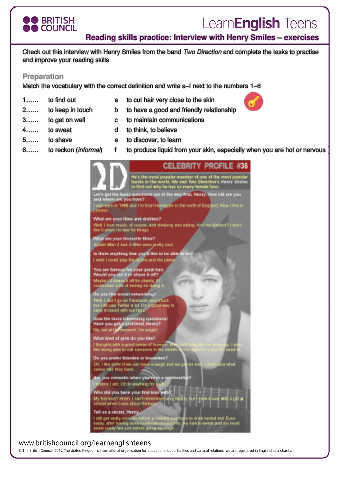 Check out this interview with Henry Smiles from the band Two Direction and complete the tasks to practise