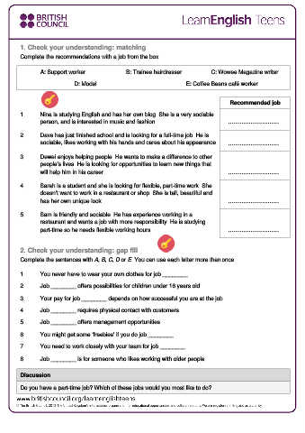 Do you have a part-time job? Which of these jobs would you most like to do?