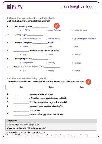 3. _______________ likes Iggy's suggestion to go to The Island Club.