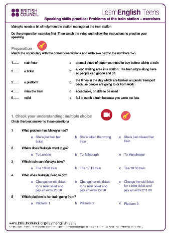 1…….. rush hour a. a small piece of paper you need to buy before taking a train