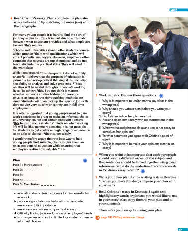 D  employers say courses not practical enough           Then write your essay following your plan.