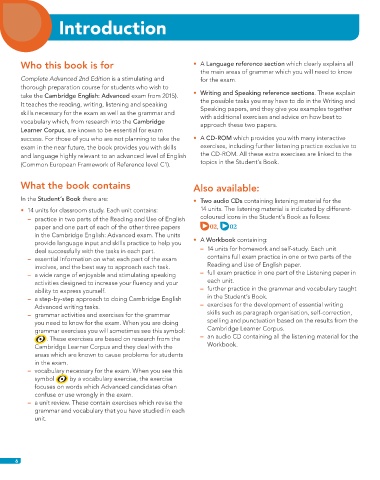 In the Student’s Book there are: t Two audio CDs containing listening material for the