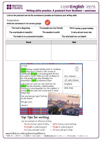 Look at the postcard and do the exercises to practise and improve your writing skills.