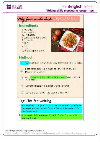 Writing skills practice: A recipe – text