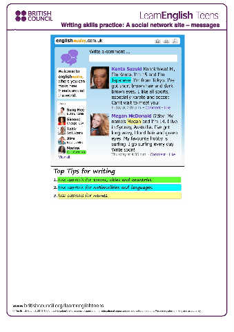 Writing skills practice: A social network site – messages
