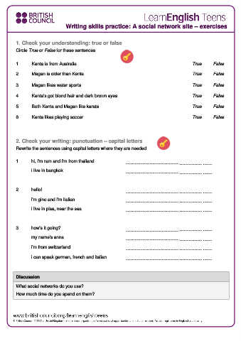 Writing skills practice: A social network site – exercises