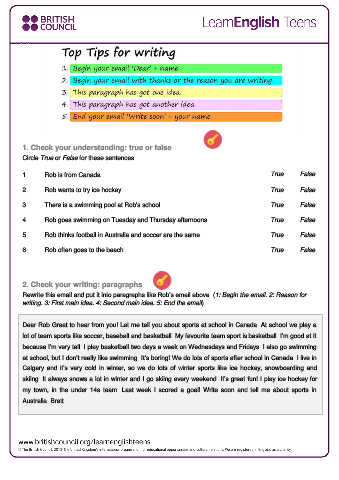 Dear Rob Great to hear from you! Let me tell you about sports at school in Canada. At school we play a