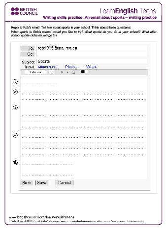 Reply to Rob’s email. Tell him about sports in your school. Think about these questions: