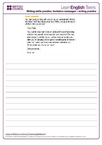 Writing skills practice: Invitation messages – writing practice