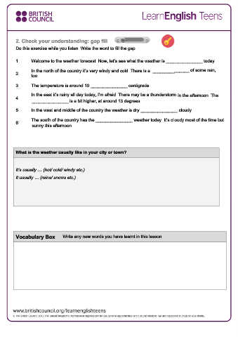 1. Welcome to the weather forecast. Now, let’s see what the weather is _______________ today.
