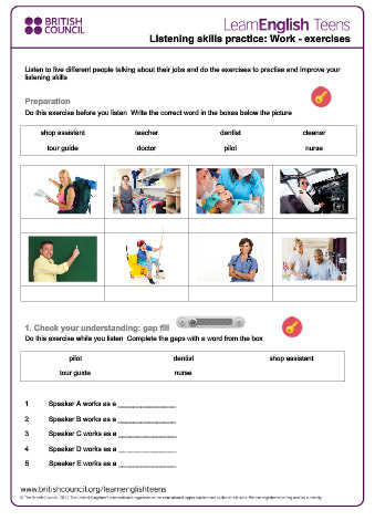 Listen to five different people talking about their jobs and do the exercises to practise and improve your