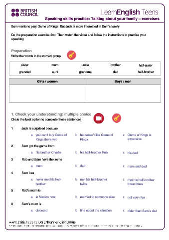 Do the preparation exercise first. Then watch the video and follow the instructions to practise your