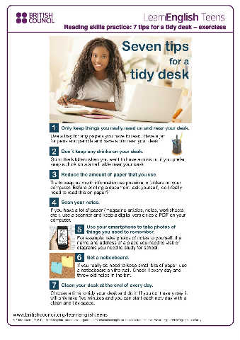 Reading skills practice: 7 tips for a tidy desk – exercises