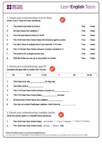 1. The ticket is for trains to Oxford. True False