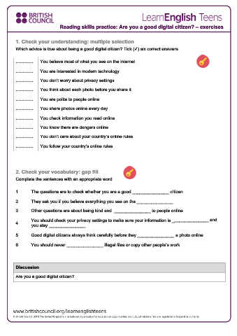 Reading skills practice: Are you a good digital citizen? – exercises