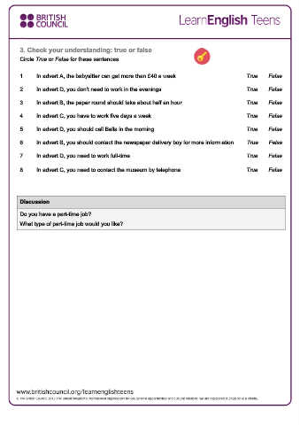 6. In advert B, you should contact the newspaper delivery boy for more information. True False