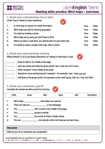 Write numbers (1–5) to put these instructions for making a mind map in order.