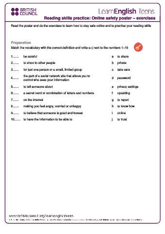 Read the poster and do the exercises to learn how to stay safe online and to practise your reading skills.