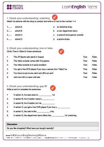 Match the adverts with the shop or product and write a–d next to the number 1–4.