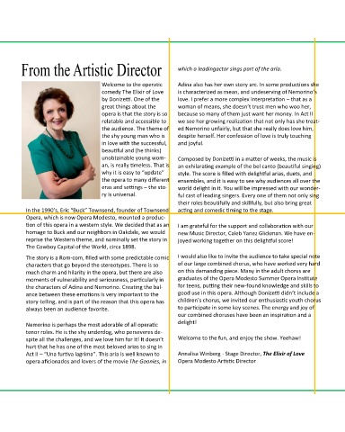 Act II – “Una furtiva lagrima”. This aria is well known to Annalisa Winberg - Stage Director, The Elixir of Love