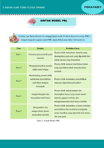 E-bahan ajar fluida dinamis ini menggunakan model Problem Based Learning (PBL).